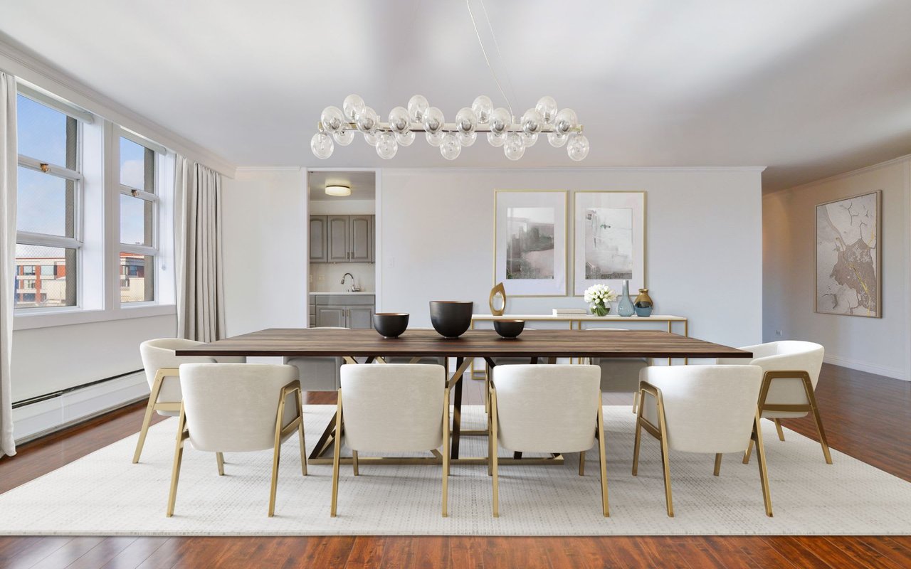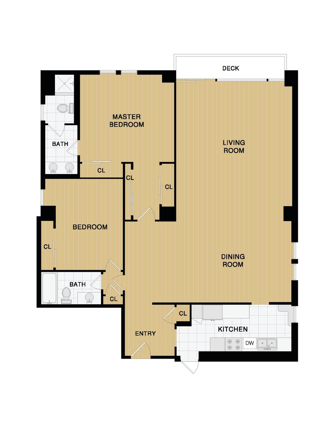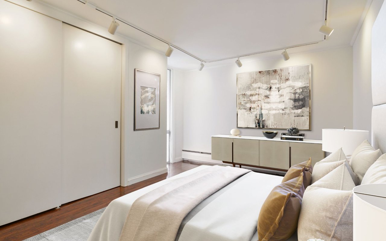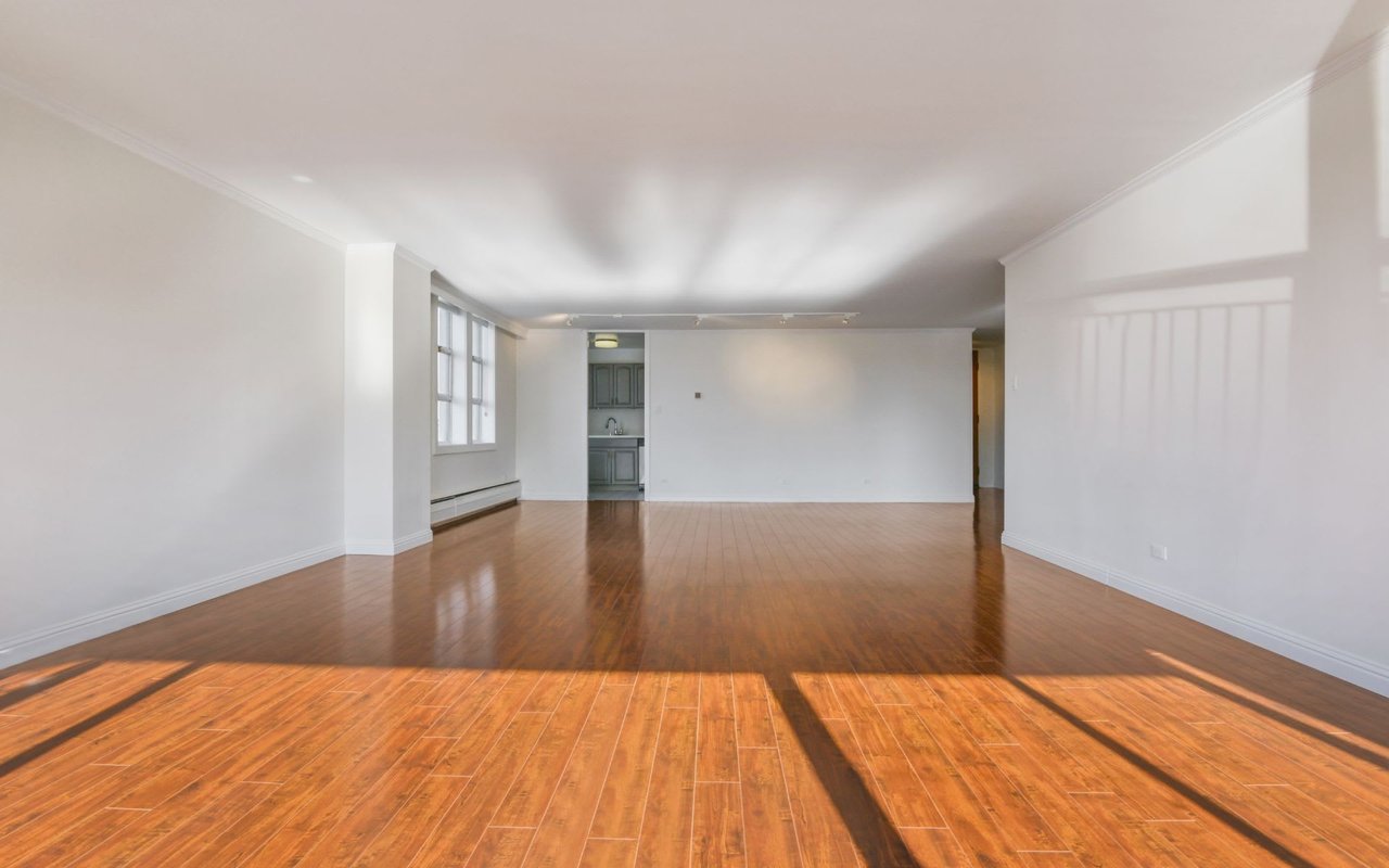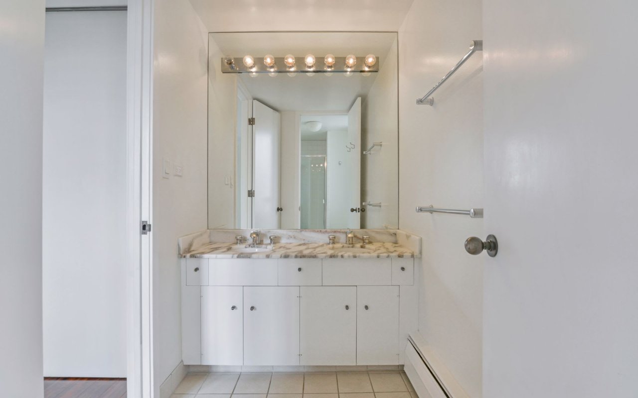Ideally positioned in the south-west corner of the building, 2200 Pacific Ave #10F is flooded with natural light and enjoys incredible views. Details include expansive wood floors, floor-to-ceiling windows in the living room, and crown molding throughout. The large open living and dining areas offer spacious entertainment areas and create a seamless flow. Spectacular views of the Golden Gate Bridge, Twin Peaks, Sutro Tower, and St. Ignatius can be enjoyed from the living room and adjacent patio. Beyond the dining room rests the galley style kitchen, which is appointed with dual ovens, a countertop stove, stainless steel appliances, and quartz countertops. In the south-east corner of the home is the sunny master suite, complete with three closets and an en-suite bathroom that features dual sinks with a marble topped vanity, and a walk-in shower. Off of the hallway rests the second bedroom, a full bath, and linen closet. The bathroom features a marble topped vanity and a shower/tub combination enclosed in sliding glass doors.