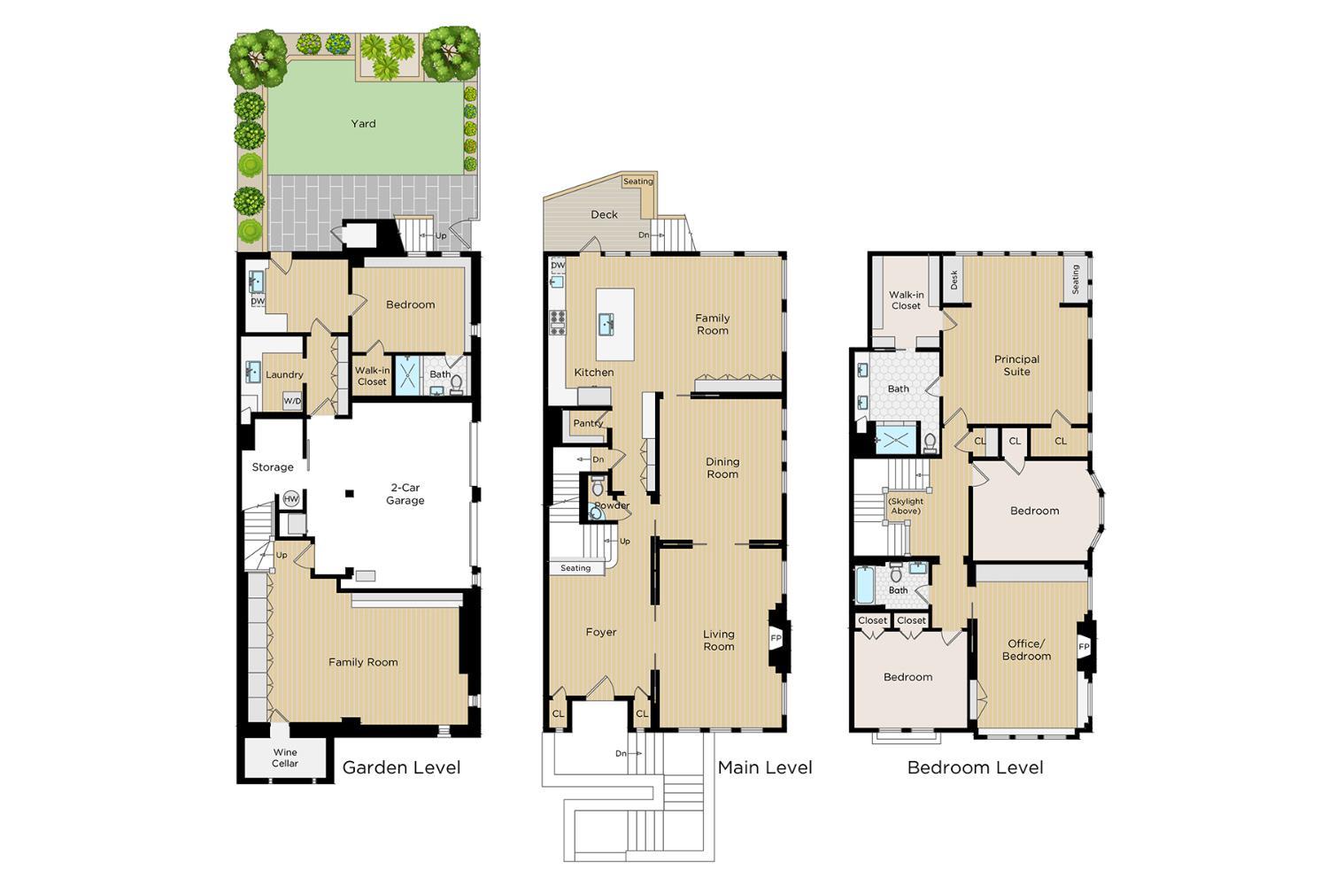 Prominently positioned on a light-filled corner lot in the heart of Cole Valley, this beautifully renovated 1904 home blends preserved architectural character with thoughtful modern updates. Exceptional natural light fills the interiors, highlighting white oak hardwood floors, intricate moldings, and wainscoting, while the home's gracious scale creates an inviting setting for both everyday living and entertaining. Built-in speakers, custom window coverings , and air conditioning on the upper level enhance comfort and livability. A spacious entry foyer introduces the main level, framed by leaded glass doors to the coat closets and a striking front door featuring a beveled glass sunburst. The formal living and dining rooms showcase classic period detail and are separated by pocket doors, offering flexibility for open gatherings or more intimate occasions. The living room features a fireplace, adding warmth and character to the space. At the rear of the home, the kitchen and family room are thoughtfully integrated, creating an open and inviting setting for daily living with walk-out access to a deck with a dedicated gas line for BBQ and stairs leading to the sunny south-facing garden surrounded by mature greenery. The chef's kitchen is anchored by a large island with counter seating and features Calacatta Oro marble, two sinks, a Wolf range, premium Dornbracht fixtures, and a walk-in pantry. The upper level is anchored by the expansive primary suite, a serene retreat featuring a walk-in closet and a sun-filled sitting area framed by a wall of windows with built-in desk and seating overlooking the surrounding greenery. The spa-like bath is finished in Calacatta Oro marble and features a dual vanity, walk-in shower, refined Waterworks fixtures, and a convenient laundry chute. Two additional bedrooms offer generous proportions and excellent light and share a beautifully appointed full bath, while an office or fourth bedroom provides exceptional flexibility with built-ins, a fireplace, and media area. The lower level offers a spacious family/media room with built-in cabinetry and a temperature-controlled wine cellar. A private guest suite with bedroom and bath enjoys its own entrance directly from the garden, creating an ideal space for guests or extended stays. A dedicated laundry room and rare two-car side-by-side garage complete the home. Ideally located just moments from the shops and restaurants along Cole Street and close to Buena Vista Park.